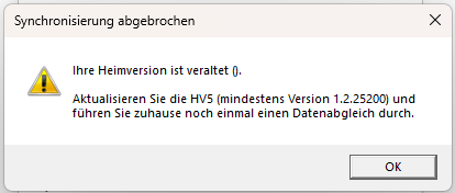 die Version 5 besitzt einen Schutz vor dem Synchronisieren mit alten HVs. Beim Notenabgleich in der Heimversion wird die dortige Versionsnummer auf das Transportmedium geschrieben und dann beim Abgleich in der Schule gelesen.