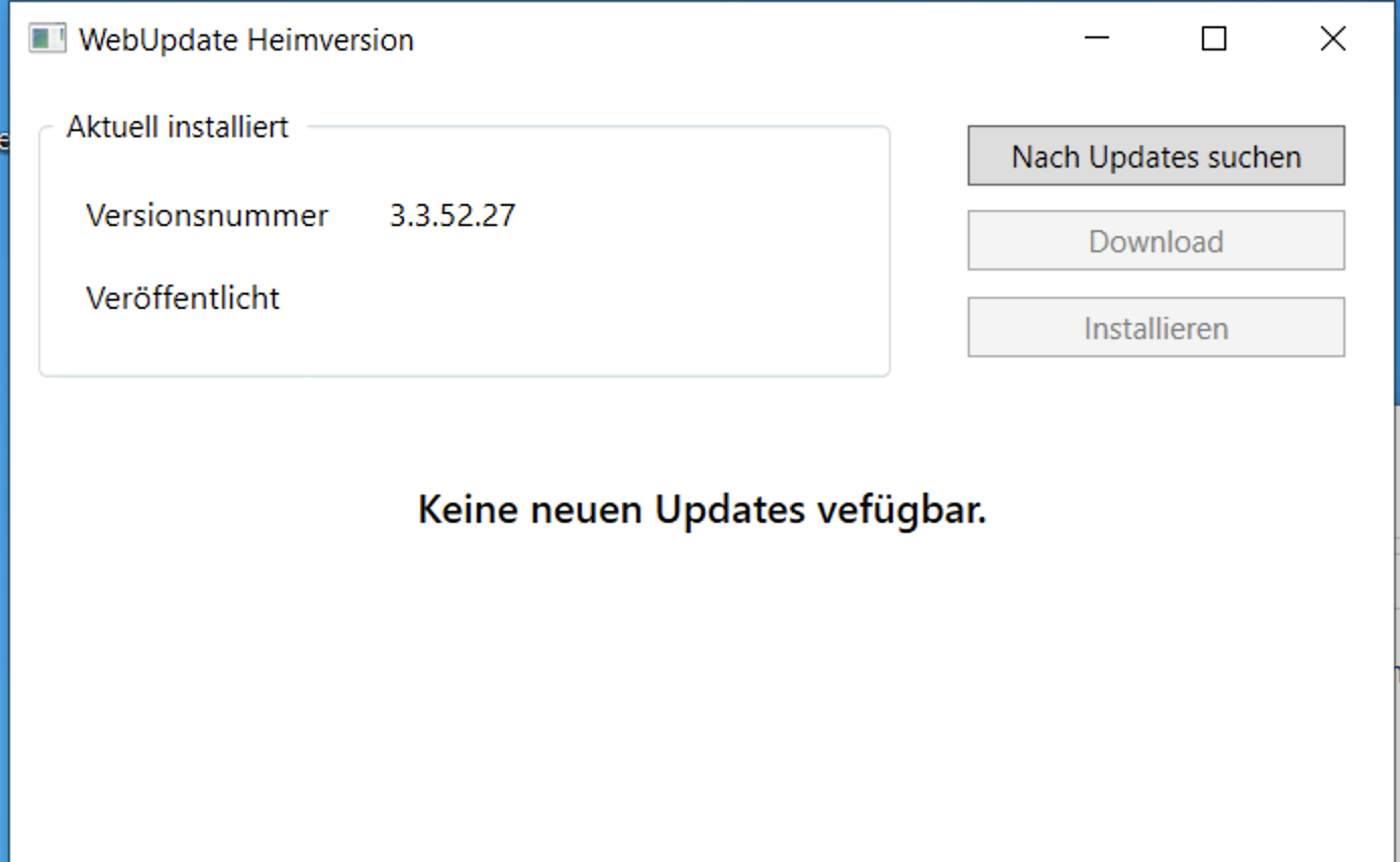 WebUpdateHV zeigt an, dass keine Updates mehr verfügbar seien (vgl. Screenshot).