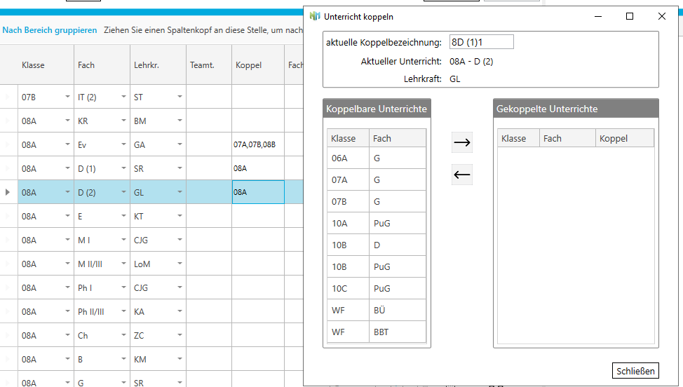 ich habe mit der letzten Stundenplanänderung unterm Jahr eine Klasse teilen müssen.